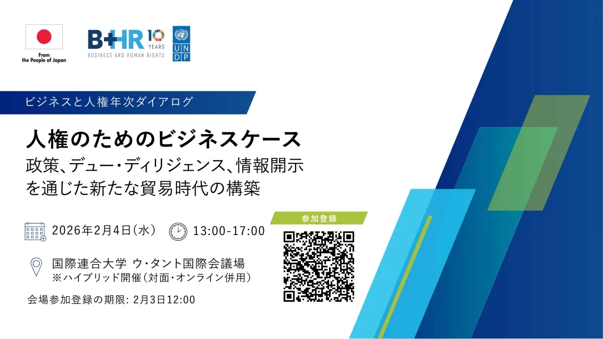 国連開発計画(UNDP)と外務省が主催する一大イベント「ビジネスと人権年次ダイアログ」が、2026年2月4日に開催されます。このイベントは「人権のためのビジネスケース:政策、デュー・ディリジェンス、情報開示を通じた新たな貿易時代の構築」をテーマにしており、企業や政府関係者、学生にとって重要な議論の場となることが期待されています。