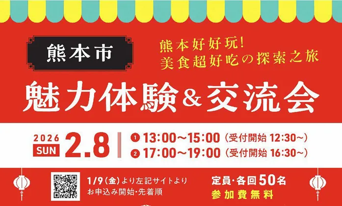 熊本市が主催する特別なイベント、「熊本好好玩! 美食超好吃の探索之旅熊本市魅力体験&交流会」と「熊本の食材を使った台湾料理教室」が、2026年2月に東京都内で開催されます。