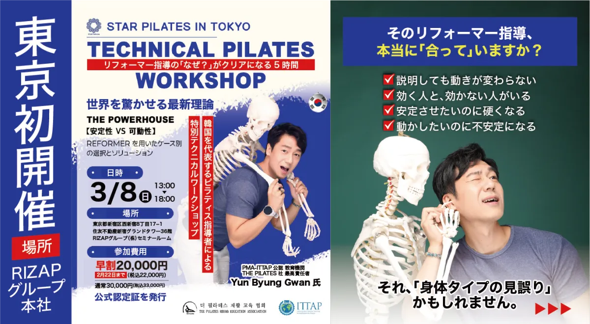 スターピラティスが誇る最新教育プログラムが、ついに東京で初開催されることとなりました。今春、RIZAPグループ本社にて行われる「TECHNICAL PILATES WORKSHOP」は、国際的な教育機関である「The Pilates リハビリテーション教育協会」との提携のもと、指導者が求める高度なスキルと知識を提供する貴重な機会です。このワークショップは、スターピラティスの取り組みの一環として、インストラクターがより良い指導力を身につけられる場を提供するものです。