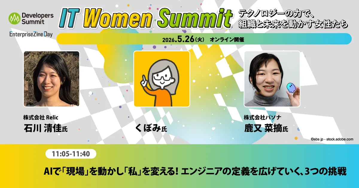 2026年5月26日(火)、IT業界で活躍する女性を応援する特別なイベント「IT Women Summit」が開催されます。このカンファレンスには、株式会社Relicからエンジニアの石川清佳氏が登壇し、ここでAIとエンジニアの関係についての知見を共有します。