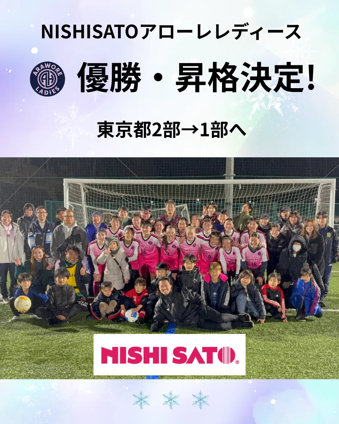 2025年12月21日に行われた東京都2部リーグ第9節にて、NISHISATOアローレレディースはFC駒沢女子との試合を3-2で勝利し、優勝が決定いたしました。この勝利により、NISHISATOアローレレディースは東京1部リーグへの昇格を果たしました。これは新しいチームがわずか2年で達成した快挙として、多くの注目を集めています。