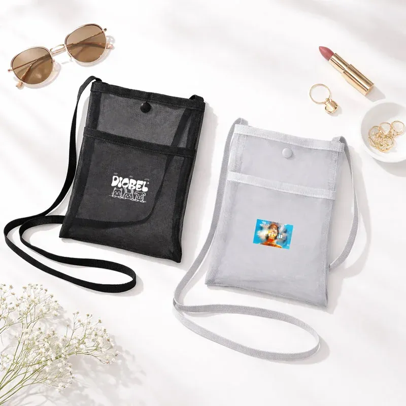このメッシュサコッシュの最大の特徴は、そのコンパクトなサイズ感。約190mm×150mmの薄型設計は、外出時にも気軽に持ち運びができるため、日常の使いやすさを追求したアイテムとなっています。また、通気性に優れたメッシュ素材が採用されているため、どんな季節でも快適に使用することができます。