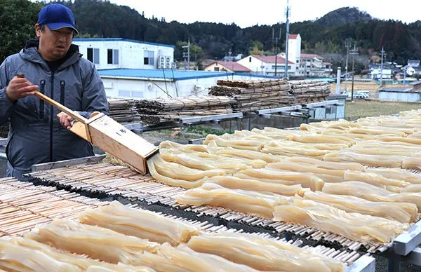 この後、ところてんは夜間の冷気で凍り、日中は太陽の光で水分が蒸発するように約2週間にわたり「天日干し」が続けられます。一般的な寒天とは違い、こちらは自然の条件を利用して製造されるため、ひと味違う風味を楽しめます。福田センター長は、昨年の11月・12月に気温が高かったため、寒天が作れるか心配していたものの、年が明けて気温が下がり安堵しているとのことです。「伝統産業を絶やさないように、今後も寒天づくりを続けていきたい」と強い意欲を示していました。