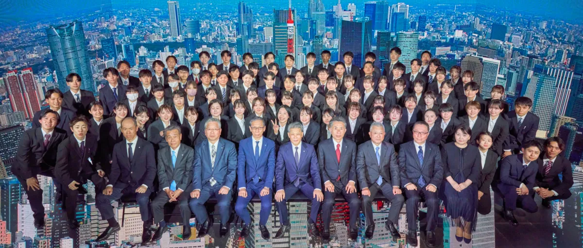 東京タワーでは、およそ100名の新入社員が直接参加し、他の会場とオンラインでつながって式典を進めました。ワールドホールディングスの伊井田栄吉会長兼社長は、式典で新入社員たちに向けて祝辞を述べました。「皆さんと同じ時間を過ごせることが嬉しい」と切り出し、会社の成長への決意を語りました。また、社員数5万人を超える当社グループが「日本を代表する企業、世界に羽ばたく企業として成長していく」という目標を掲げる中で、社会人としての責任を果たすことが新入社員に求められることを強調しました。