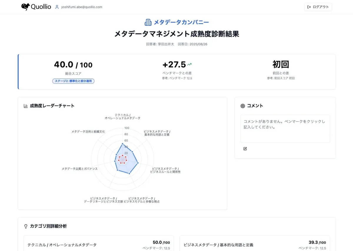 株式会社Quollio Technologiesが、2025年9月1日より企業向けに提供を開始する「メタデータマネジメント成熟度アセスメントサービス」は、データ活用やAI技術の導入を加速するための重要なステップとなります。このサービスでは、企業のメタデータに関する現状を客観的に評価し、改善ポイントを明確化することで、データドリブン経営の実現を支援します。