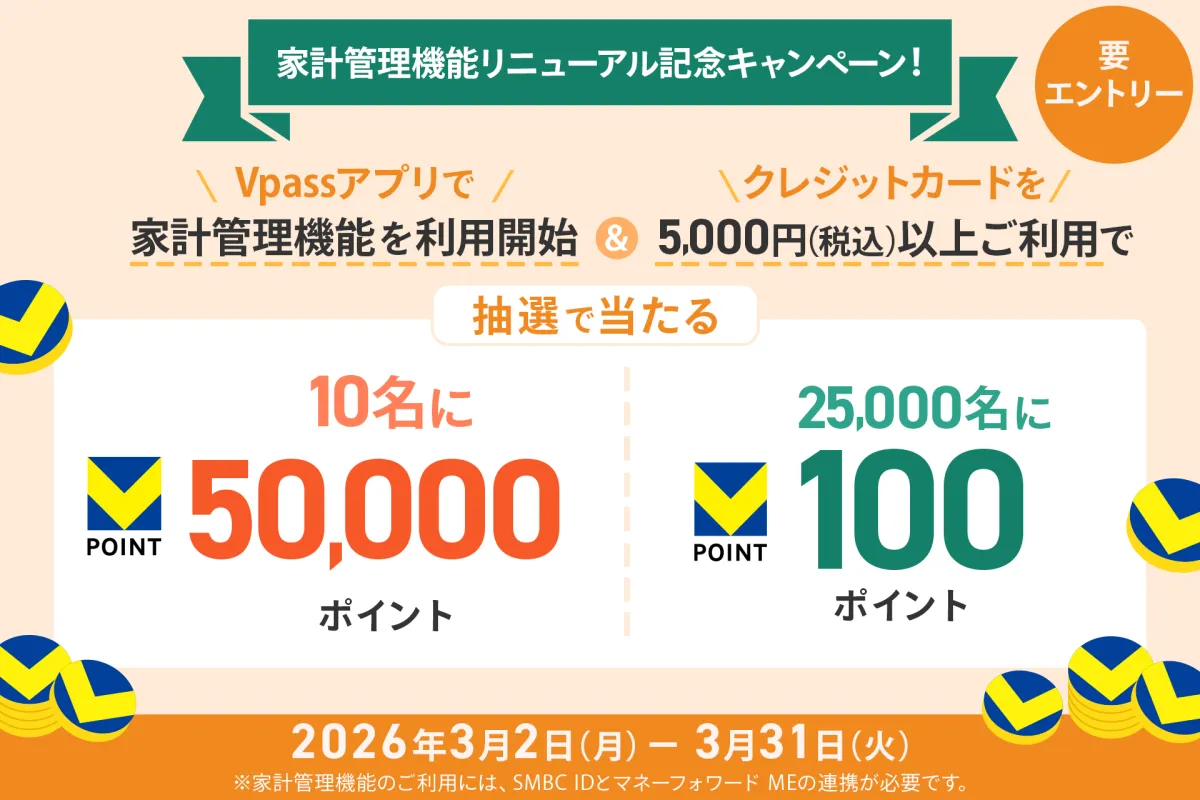 注意点: 新機能を利用するためには、Vpassアプリを最新のバージョンにアップデートし、SMBC IDとマネーフォワードMEのIDを連携させる必要があります。また、リニューアルに伴い、以前の家計管理機能は終了します。