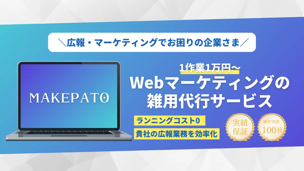 企業がMAKEPATOを利用することで、マーケティング担当者の負担が軽減され、人的リソースを本業に集中させることができます。また、コストに関しても、従来の外注費用が高額になりがちな業務を低価格で提供するため、効率的な予算の運用が可能です。