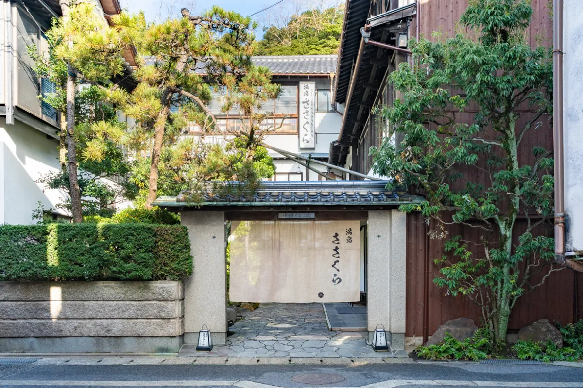 城崎温泉は、歴史ある温泉地で、多くの観光客が訪れます。「湯宿ささくら」は、その中心地に位置し、JR城崎温泉駅から徒歩5分というアクセスの良さが魅力です。周囲には美しい庭園が広がり、大正ロマンの雰囲気を漂わせています。