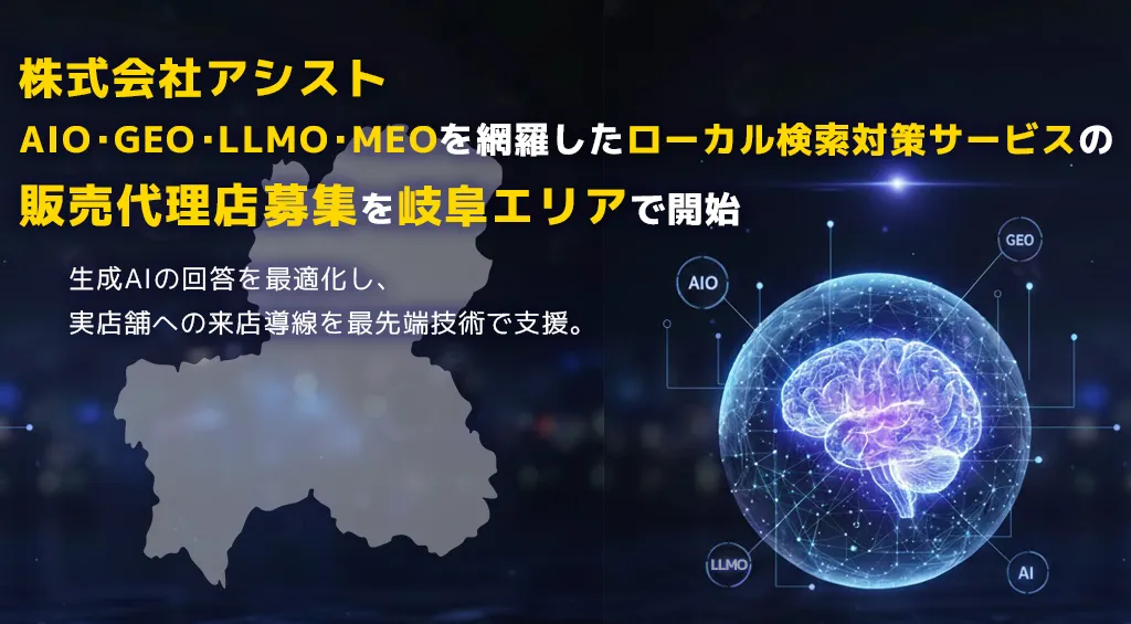 株式会社アシストは、岐阜エリアにおいて、ローカル検索対策サービスの販売代理店を募集開始した。このサービスは、AIO(AI検索最適化)、GEO(生成エンジン最適化)、LLMO(大規模言語モデル最適化)、MEO(マップエンジン最適化)を網羅したものであり、最先端の技術を活用して実店舗とユーザーのマッチングを支援する。