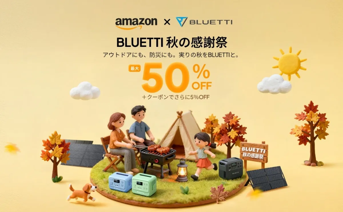 昨今、アウトドアや非常時の電力ニーズが高まる中、ポータブル電源が注目されています。この秋、信頼と実績を持つBLUETTIは「BLUETTI 秋の感謝祭」を開催します!