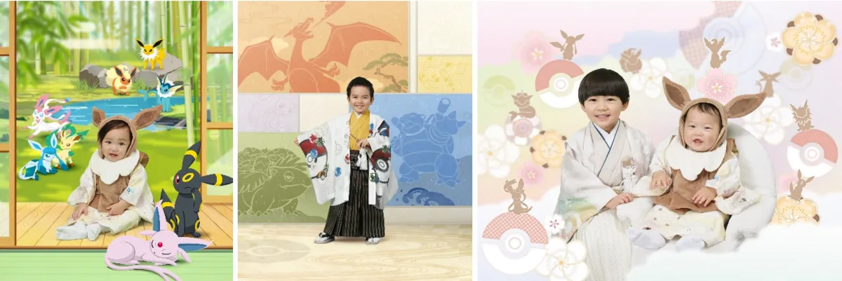 新作「ポケモン和装」は、0歳から七五三まで、お子様の成長段階に応じた様々な衣装を用意しています。