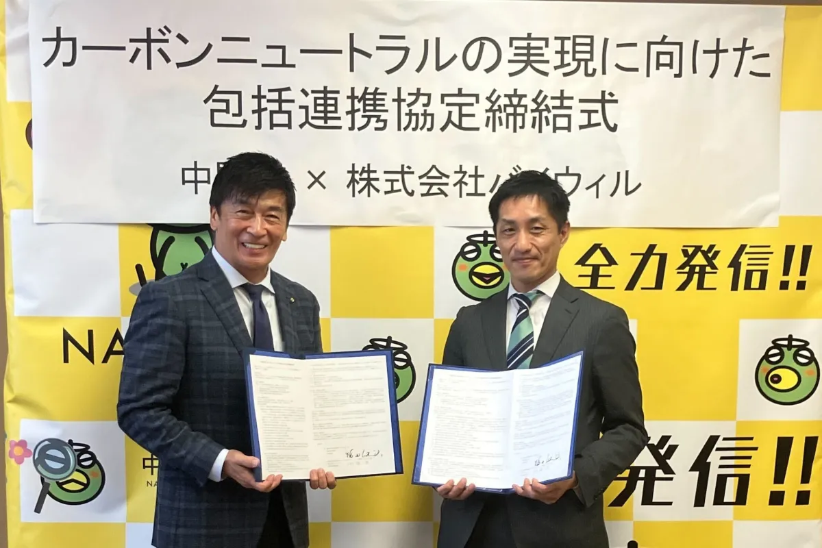 2023年4月7日、福岡県中間市(市長:福田 健次)と株式会社バイウィル(代表取締役社長:下村 雄一郎)は、環境価値を基本とした連携協定を締結しました。この協定は「GXをやりたくなる世界」の実現を目指し、地域の脱炭素化や経済循環の促進に寄与することを目的としています。