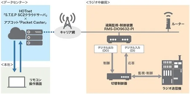 新システムは、北海道総合通信網株式会社が提供するクラウドプラットフォーム「S.T.E.P SC2クラウドサーバ」で動作しており、アプコットの遠隔監視・制御ソフト「Packet Caster」と連携して効率的に管理されています。