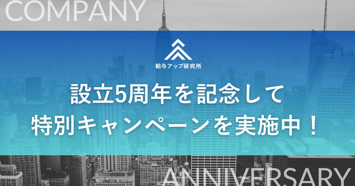 株式会社給与アップ研究所が2026年1月8日に設立5周年を迎えました。それに伴い、業務の拡大に合わせて新オフィスへの移転を行い、東京都渋谷区恵比寿南にて新たな活動をスタートさせました。この節目を契機に、同社はこれまでの知見を活かした特別キャンペーンを発表しました。