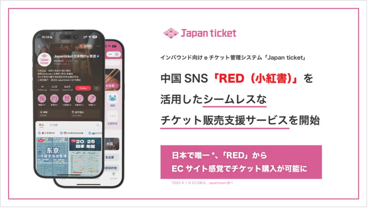 株式会社Japanticketは、インバウンド向けのeチケット管理システム「Japan ticket」を活用し、中国のSNS「RED(小紅書)」を駆使した新しいチケット販売支援サービスを開始しました。このサービスは、訪日観光客の消費行動に即した、革新的かつシームレスな購入体験を提供すべく設計されています。
