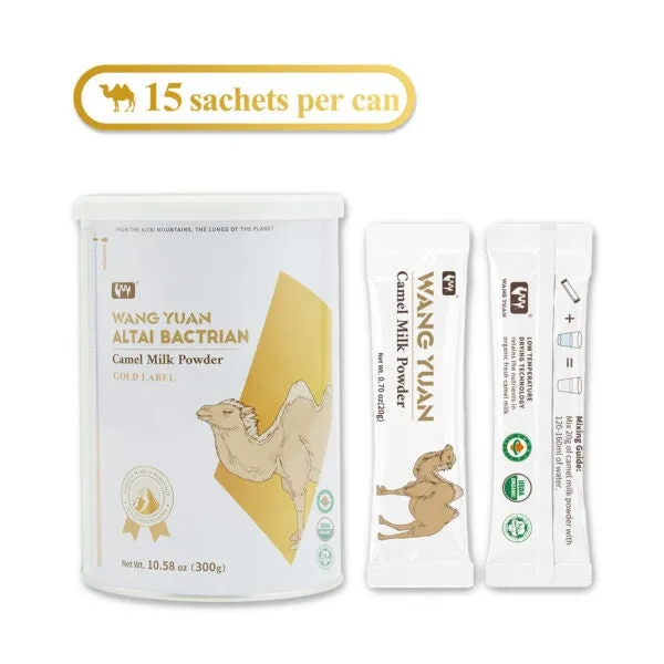 先行販売はモーションギャラリーで行われ、期間は2025年10月10日から11月28日までです。商品名は「WANG YUAN ALTAI BACTRIAN Camel Milk Powder」で、内容量は300g(20g×15包)、賞味期限は製造日から18ヶ月となっています。詳細については、