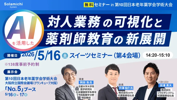 当社、株式会社ソラミチシステムは、本大会にブースを出展し、クラウド型電子薬歴『CARADA 電子薬歴 Solamichi』やAI技術の実用性を紹介します。ブースNo.5では、システムの具体的な機能や導入薬局からのフィードバックを通じて、薬局のデジタルトランスフォーメーション(DX)や薬剤師の教育についての情報を提供します。