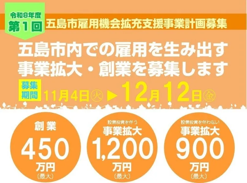 長崎県の五島市では、地域経済の活性化と雇用創出を目的とした支援事業が始まります。これは、全国から新たな事業所の設置や起業を促進し、地域での雇用機会を増やすためのプログラムです。この支援事業は、地域の持続可能な発展に向けた重要な取り組みで、応募期間は2025年11月4日から12月12日まで。