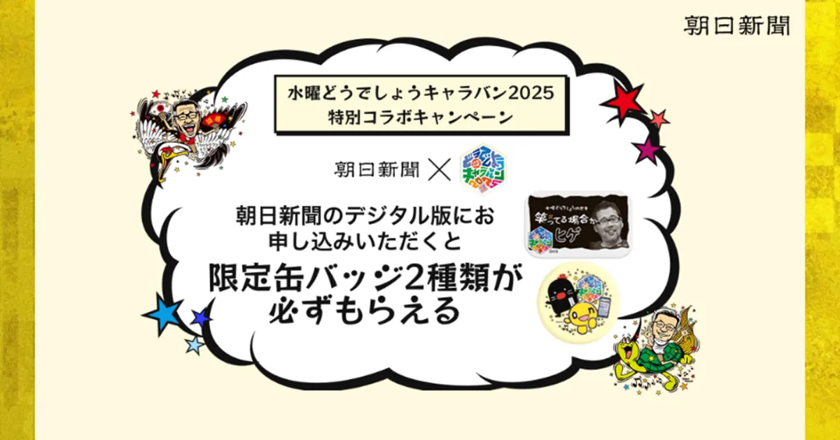「水曜どうでしょう」のファンに嬉しいお知らせです!株式会社朝日新聞社が北海道テレビ放送株式会社(HTB)の人気バラエティ番組「水曜どうでしょう」とコラボした特別キャンペーンを2025年9月13日(土)から実施します。このキャンペーンは、同番組のイベント「水曜どうでしょうキャラバン2025」を記念して行われます。
