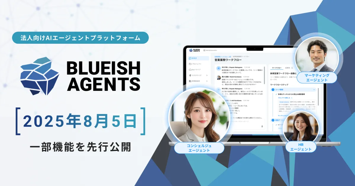 株式会社BLUEISHは、法人向けAIエージェントプラットフォーム『BLUEISH Agents』に新たに営業業務特化型の機能を8月5日に公開しました。この新機能の導入により、企業は属人化された業務から脱却し、営業担当者はよりクリエイティブな業務に専念できる環境が整います。