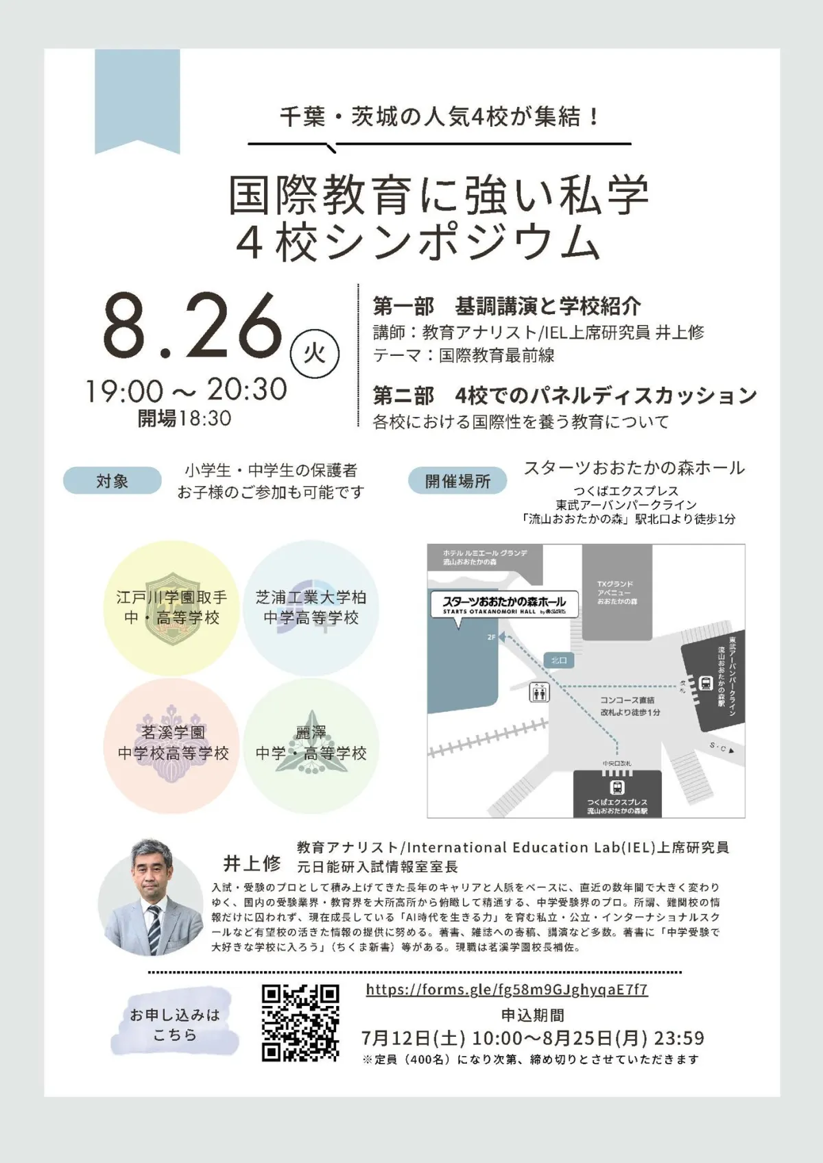 2025年8月26日(火)、千葉県柏市に位置する麗澤中学・高等学校が主催する「国際教育に強い私学 4校シンポジウム」が開催されます。このイベントは、国際教育に力を入れる茨城・千葉の4つの私立中高一貫校が参加し、それぞれの教育理念と取り組みを紹介する貴重な機会です。