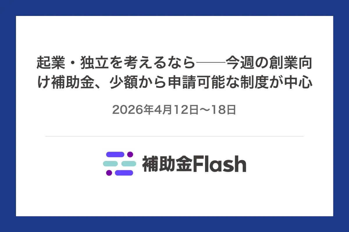 株式会社Franca AIが提供する『補助金フラッシュ』は、全国規模で利用可能な補助金や助成金情報を検索できる便利なサービスです。2026年4月12日から18日の間に公募が始まった187件から、特に利用したい支援を15件に絞って分析しました。「創業向けの補助金は大きな資金が必要」と敬遠されがちですが、なんと50万円台から申し込める制度も数多くあり、特に創業前の段階の方にぴったりです。