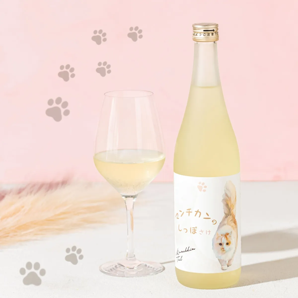 まずご紹介するのは、かわいいマンチカンが描かれた純米酒「マンチカンのしっぽ さけ」。佐賀県産の「夢しずく」を100%使用し、ワイン酵母で仕込まれたこの日本酒は、甘酸っぱさが特徴で、日本酒度はマイナス20のしっかりした甘口。酸度は3.1と絶妙で、冷やすとキリッとし、常温では穏やかな飲み口を楽しめます。デザートとも合わせやすく、ワイングラスで香りを楽しむのもオススメです。ビジュアルの可愛さからは想像できない、本格的な味わいを楽しんでください。
