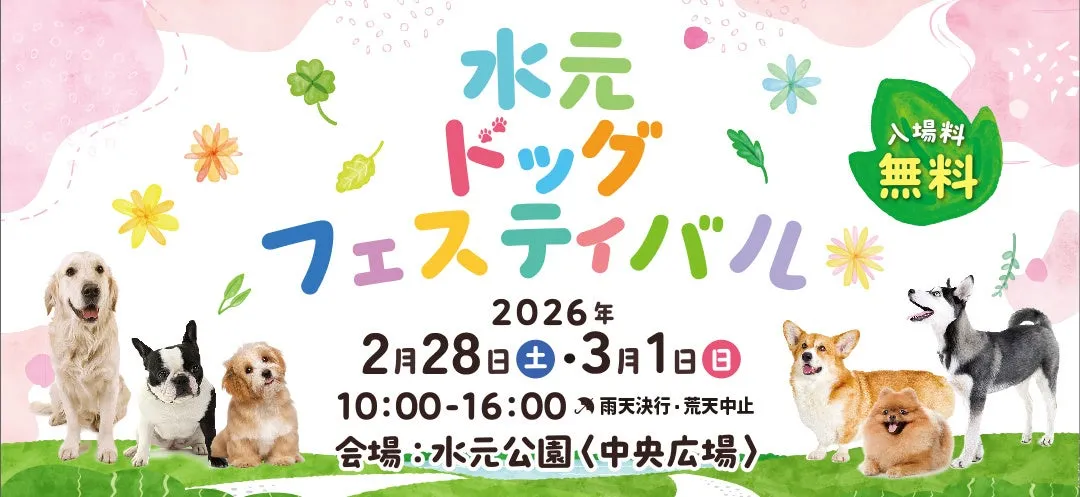 2026年の春に開催される「水元ドッグフェスティバル」は、東京都葛飾区にある水元公園で行われます。このイベントは、愛犬とその家族が楽しむことを目的としたもので、さまざまなアクティビティやワークショップが用意されています。