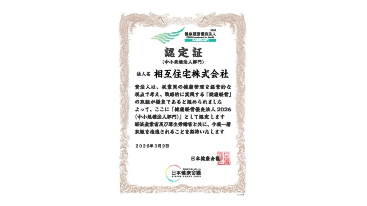 2026年3月9日、相互住宅株式会社は「健康経営優良法人2026(中小規模法人部門)」に認定されました。この認定は、日本健康会議が実施する制度で、特に優れた健康経営を実践している法人を評価し、社会的な認知を促進することを目的としています。