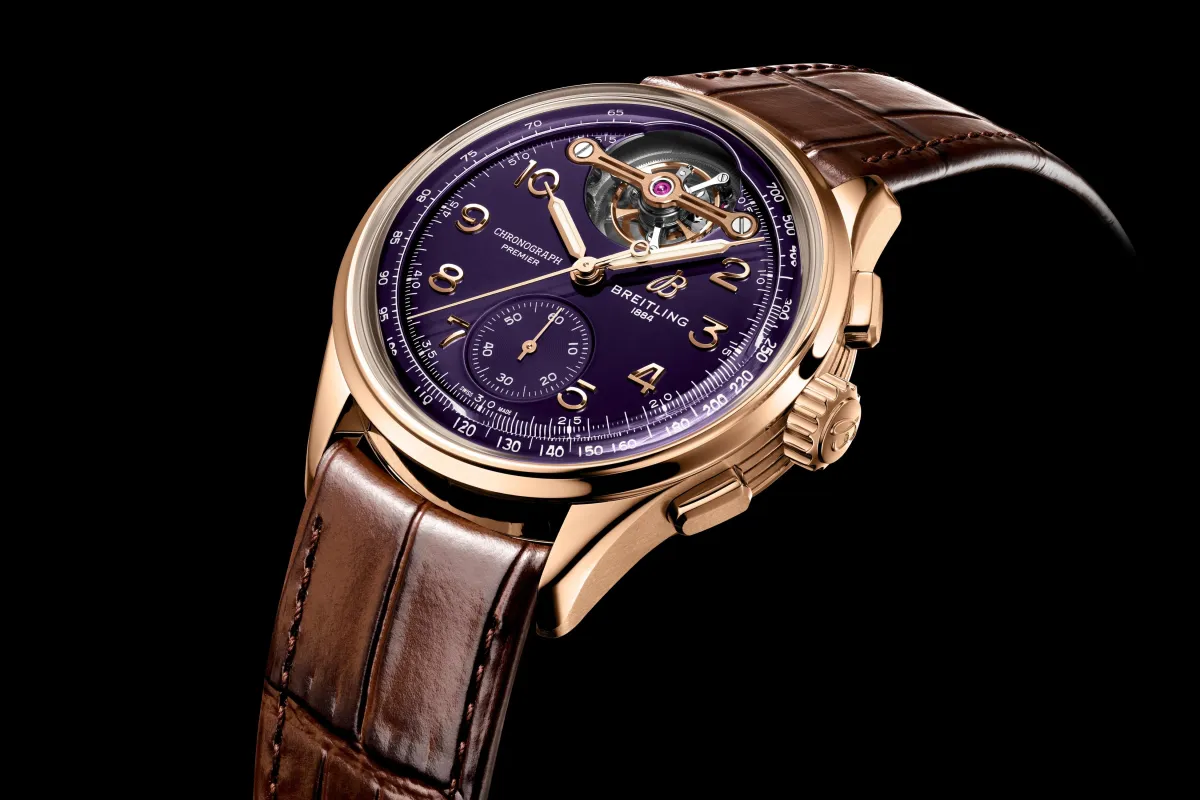 プレミエコレクションは、エレガンスを象徴するモデルとして生まれましたが、その中でも最上位機種であるプレミエトゥールビヨンは、特に希少で魅力的です。このシリーズは、時計の機械式ムーブメントに魅了された人々のために設計されており、ブライトリングの誇るB21ムーブメントが装備されています。これは、小規模で高品質なムーブメントを製造するラ・ジュー・ペレ社と共同で開発されたものであり、トゥールビヨンとクロノグラフが融合した特異なデザインを実現しています。