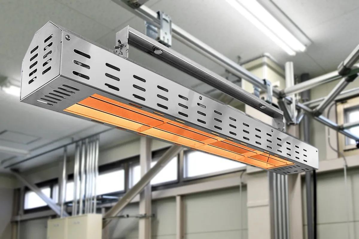 「速暖くん®」は、独自技術による反射板と高効率の「オレンジヒート®」を組み合わせたことで、放射熱を効率的に拡散します。石油やガスを用いないため、作業場の空気を汚さず、酸素不足による異常感を減少させ、より快適な職場環境を提供します。また、スペースを取らない天吊り式デザインにより設置場所の自由度も向上し、作業効率を高めます。