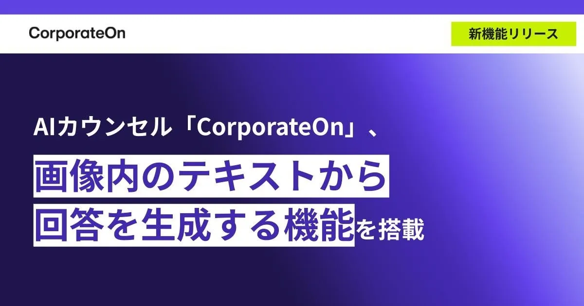 株式会社LegalOn Technologies(本社:東京都渋谷区、代表取締役:角田 望)が提供するAIカウンセル「CorporateOn」が、最新のアップデートを発表しました。新たに適用された機能により、PDFやWord、PowerPointといったドキュメント内にある画像からテキストを自動抽出し、ユーザーの問い合わせに対する回答に活用できるようになりました。この革新的な機能の実現により、企業のナレッジの蓄積と活用がさらに便利になりました。