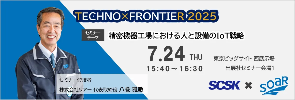 株式会社ソアー(以下、ソアー)は、2025年7月23日から25日まで東京ビッグサイトで開催される「TECHNO×FRONTIER2025」に参加し、出展者セミナーにて代表取締役の八巻雅敏が登壇します。このセミナーでは、製造業が抱える現代の課題に対する具体的な解決策を示すことが期待されています。