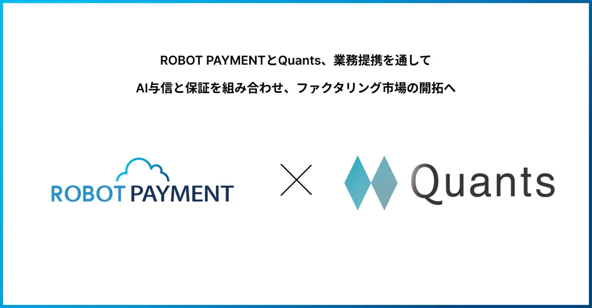 株式会社ROBOT PAYMENTは、AI与信審査を専門とするQuants株式会社と提携し、ファクタリング市場での革新を目指します。この提携により、両社が提供する技術を組み合わせることで、貸し倒れリスクを低減し、ファクタリングサービスのクオリティと対象を大きく拡大させることが期待されています。