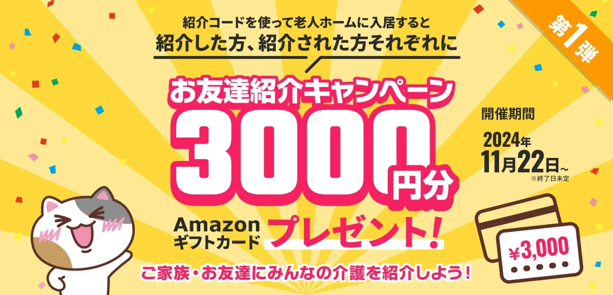 高齢者向けのサービスが求められる中、『みんなの介護』が新しく始めた『お友達紹介キャンペーン』が注目を集めています。このキャンペーンでは、介護施設を紹介した方と、紹介された方双方に、Amazonギフトカード3,000円分が進呈されるという内容です。老後の生活を支えるための老人ホーム選びがますます重要視される中、利用者にとっても嬉しい特典が用意されています。