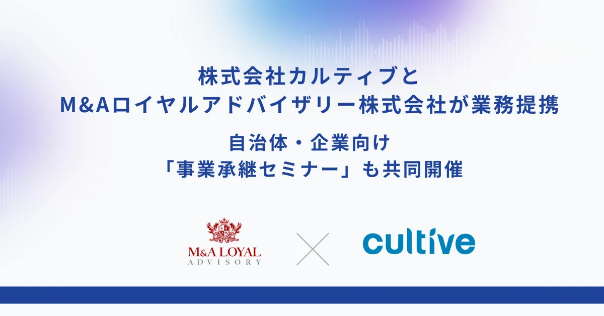 株式会社カルティブとM&Aロイヤルアドバイザリーが業務提携を結び、自治体や企業を対象にした「事業承継セミナー」の共同開催を発表しました。2025年7月29日(火)には、オンラインで両者が共催するセミナーが予定されています。