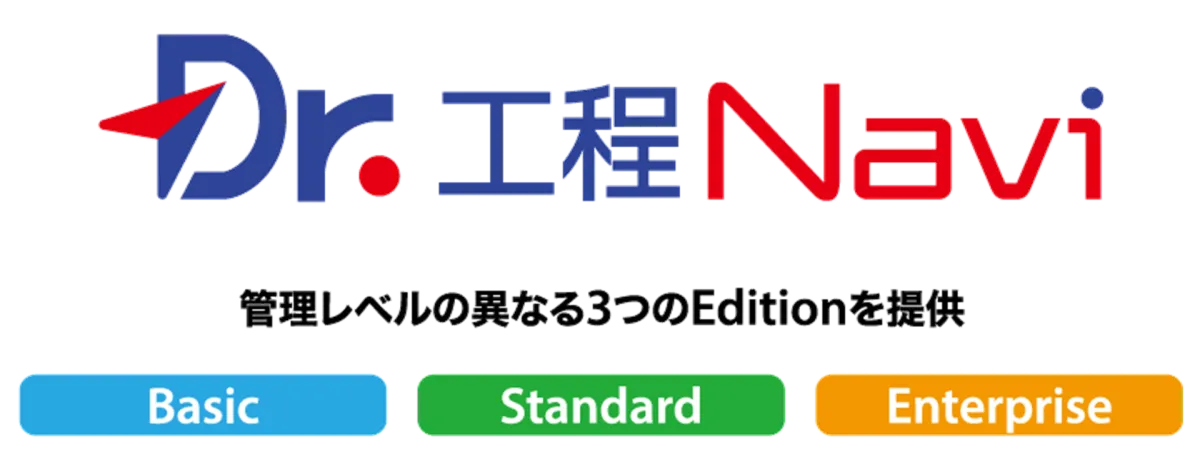 「Dr.工程Navi」は、Basic、Standard、Enterpriseの3つのエディションに分かれており、企業の管理レベルや規模に応じて最適なものを選択できる柔軟性があります。これにより、特定のニーズに合った管理手法の導入が可能となります。