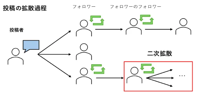 研究の中で新妻氏は、他者の情報をシェアしたりリポストしたりする際に、インフルエンサーの影響がどのように働くのかを検証しました。具体的には、インフルエンサーが情報を共有した場合、一般のユーザーが共有する場合と比べて、情報が広がる確率やスピードに違いがあるかを分析したのです。