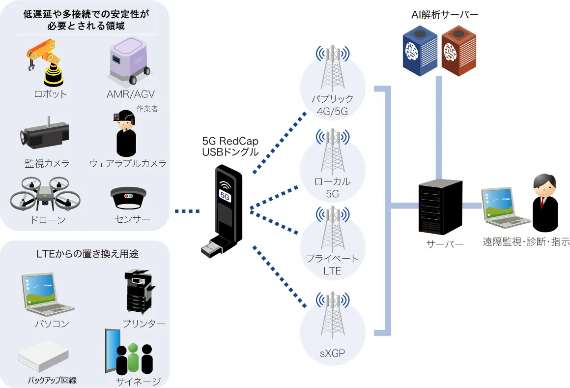 このドングルは、2025年9月中旬には一部の通信キャリアが5G RedCap対応のサービスを日本国内で開始する計画です。今後、他の通信キャリアも同様のサービスを導入することで、LTEで普及しているバックアップ回線の分野への展開も期待されています。