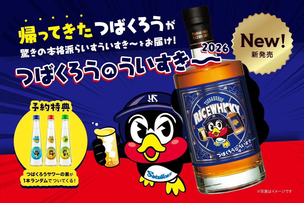 沖縄県那覇市に本社を構える久米仙酒造株式会社が、東京ヤクルトスワローズのマスコットキャラクター「つば九郎」とコラボレーションしたウイスキー「つばくろうのういすき〜 2026」を販売します。公式オンラインショップでの予約販売は、2026年4月28日(火)午前10時からスタート。本商品は、前回の販売時に非常に高い人気を誇ったため、待望の復活となるのです。