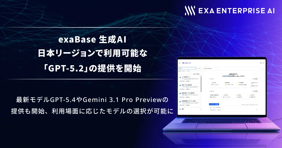 2023年10月、東京都港区に位置する株式会社エクサウィザーズのグループ会社である株式会社Exa Enterprise AIが、法人向けの生成AIサービス「exaBase」において、OpenAIが開発した最新モデル「GPT-5.2」の提供を日本リージョンでスタートしました。この新たなサービスは、日本国内で完結する利用環境を提供し、企業の生成AI活用を加速することを目的としています。