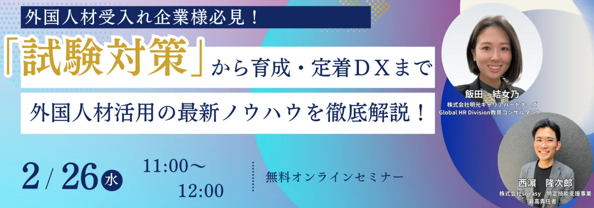 外国人材活用に向けた最新ノウハウを須弥作っと特定技能試験対策