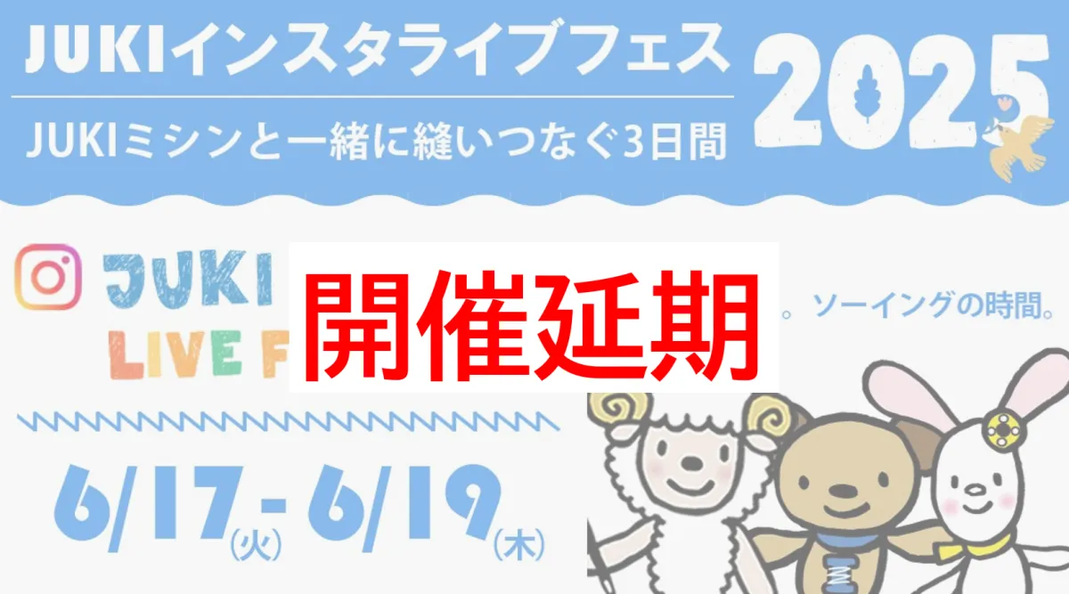 JUKI株式会社が、2025年6月17日から19日に予定されていた家庭用ミシンのためのオンラインイベント「JUKIインスタライブフェス2025」の開催を延期することを発表しました。このイベントは、家庭用ミシンに関心を持つ多くの方々に楽しんでもらえる機会を提供するものでしたが、何らかの理由により日程の変更が必要となったようです。