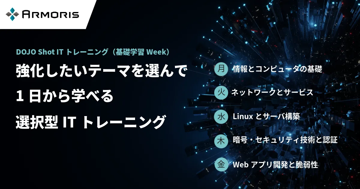 2026年4月1日、株式会社Armorisが新たなIT学習プログラム『DOJO Shot ITトレーニング(基礎学習Week)』を発表しました。このサービスは、ビジネスパーソンからセキュリティや開発を担当する専門家まで、幅広い層のニーズに応える内容となっています。今日、デジタルトランスフォーメーション(DX)の推進が進む中、IT知識の習得はますます重要視されています。しかし、従来のトレーニングでは忙しい業務の合間を縫って2日間の参加が求められることが多く、そのハードルが人材育成を阻んでいました。