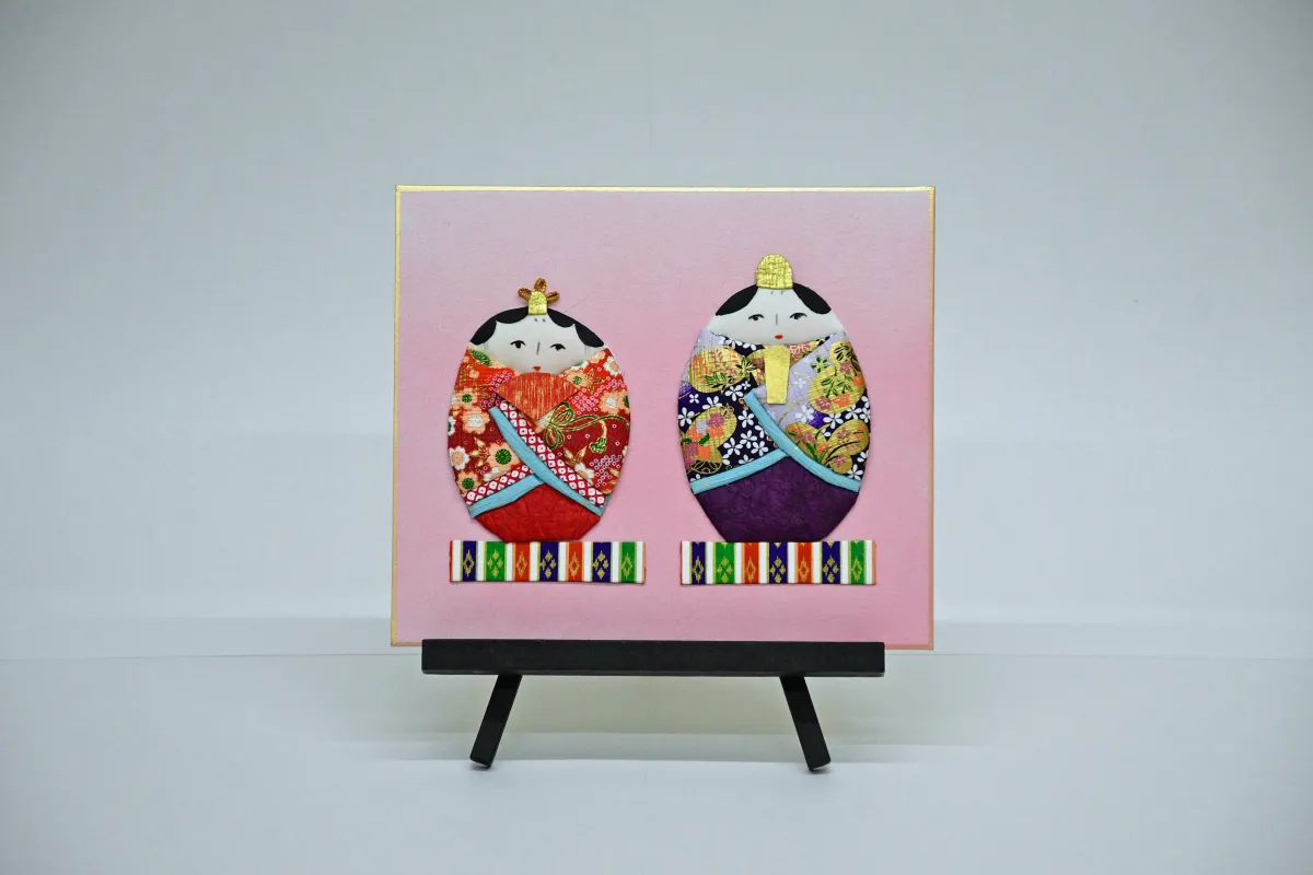 押絵は、日本の伝統的な装飾技法で、布や和紙を重ね合わせて立体感を生み出します。そのため、輪郭に沿って切り出したパーツを組み合わせることで陰影や厚みが加わり、特有の華やかさが生まれます。これにより、ひな祭りなどの季節行事を題材にした作品など、さまざまな表現が可能です。