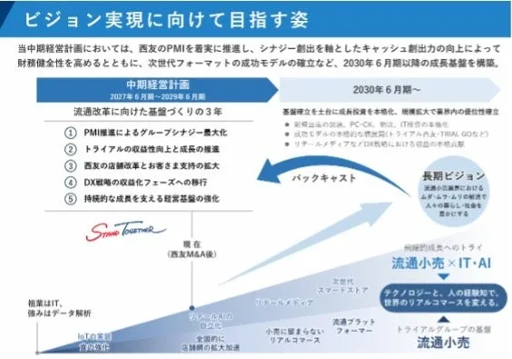 株式会社トライアルカンパニーを流通小売事業の中心に据え、永田洋幸代表取締役社長を迎えて新体制を発足させます。この新しい組織では、競争戦略本部を新設し、業態戦略、商品戦略、販売・オペレーション戦略の3つの要素を強化する方針です。これにより、収益性の向上と西友とのシナジー効果を最大限に引き出すことが期待されています。