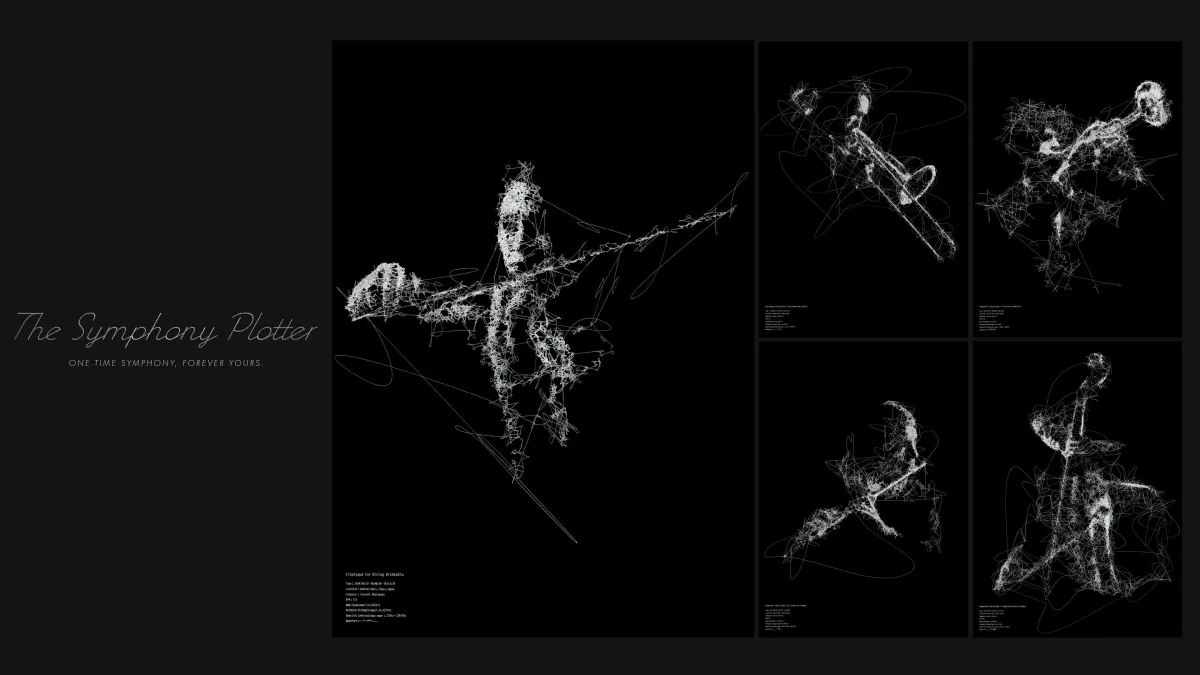 「The Symphony Plotter」は、TBWA HAKUHODOが「落合陽一×日本フィルハーモニー交響楽団プロジェクト」の一環として発表した作品です。このプロジェクトは、音楽の聴覚的体験をビジュアルで補完し、コンサート終了後もその瞬間を記録に残すことを目的としています。