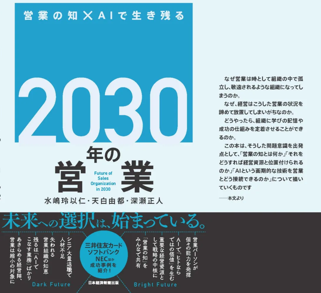 2025年、著名な書籍『2030年の営業 組織の知×AIで生き残る』が日本経済新聞出版社から発表されます。この本では、営業組織の未来についての重要な洞察が提示されており、特に三井住友カードやソフトバンク、NECといった先進企業の成功事例に基づいています。本書は、AIが進化する中で、いかに営業組織が「知」と「ヒトらしさ」の価値を再定義し、活用するかを探ります。