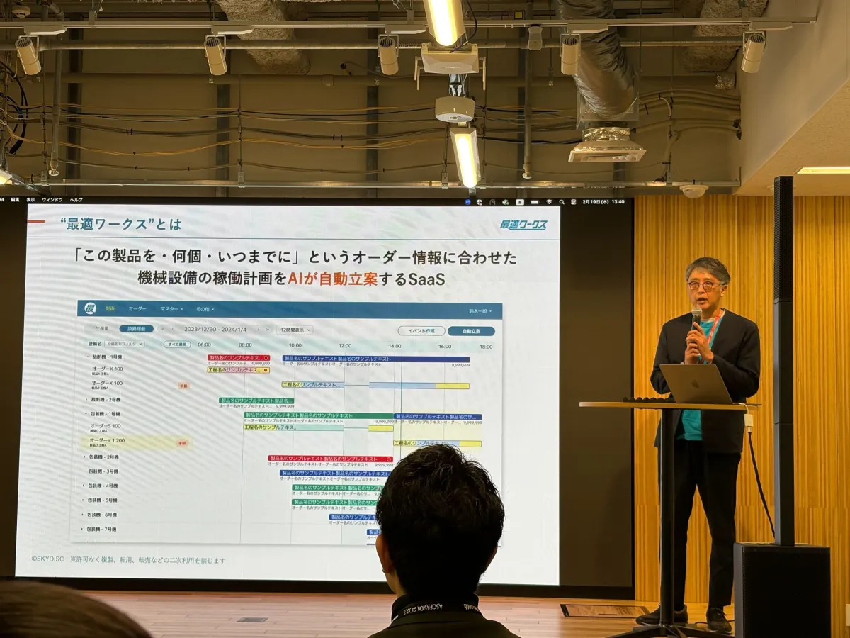 スカイディスクの代表取締役である内村 安里氏が登壇し、デジタルトランスフォーメーション(DX)を活用した中小製造業の抱えるさまざまな課題についての解決策を提案しました。内村氏は、製造業界の現状や、それに対するDXの利点を分かりやすく解説しました。例えば、効率的な生産ラインの構築や、データ駆動型の意思決定の重要性について具体的な事例を挙げながら説明し、多くの参加者の関心を引きました。