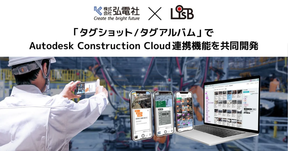 建設業界のデジタル変革が加速する中、株式会社弘電社と株式会社L is Bは、現場向けかんたん整理カメラ「タグショット」とクラウド共有サービス「タグアルバム」とのシステムを連携させる新機能を共同開発しました。この革新的な機能により、現場で普段撮影されている写真やデータを、米国Autodesk社の「Autodesk Construction Cloud」に安全に転送・保存できるようになります。